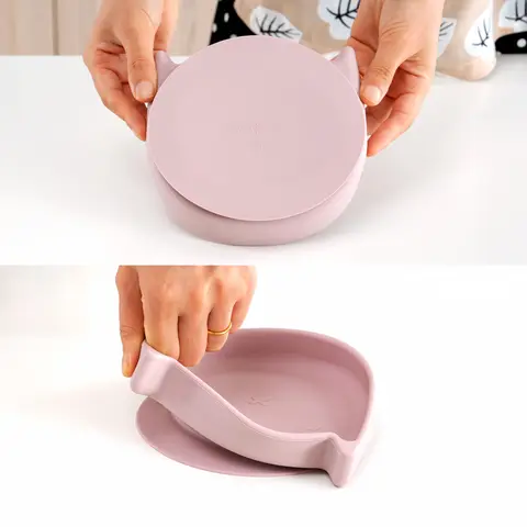 유아용 식품 등급 실리콘 접시, BPA 프리 만화 고양이 어린이 접시, 유아 훈련 식기, 수유 그릇, 아기 물건
