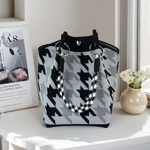 여자를위한 패션 양동이 니트 가방 여자 여행 나비 니트 양동이 토트 백 레트로 손목 쇼핑 핸드백 귀여운 주머니