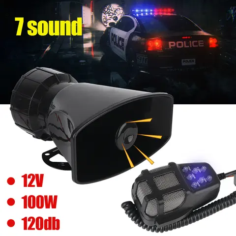 자동차 경고 알람 메가폰 버튼 백라이트 멀티 톤 및 Claxon 경적 자동차 경적 경찰 사이렌 에어 호른 스피커 120DB 시끄러운 12V 100W