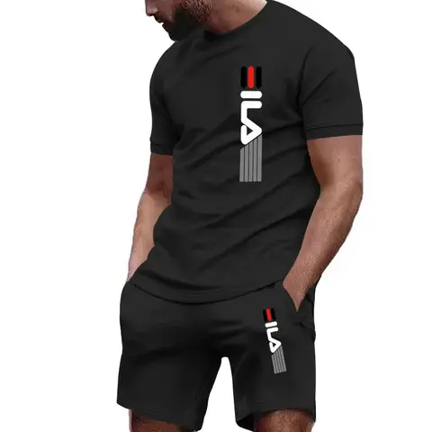 2024 남성 패션 속건성 피트니스 세트 여름 통기성 반팔 티셔츠 + 캐주얼 조깅 반바지 2 피스 세트