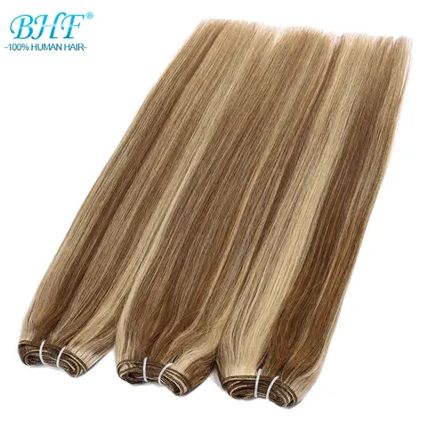 직선 인간의 머리카락 묶음 유럽 레미 인간의 머리카락은 씨실 확장에 바느질 자연 머리 갈색 금발 14″-28인치 BHF