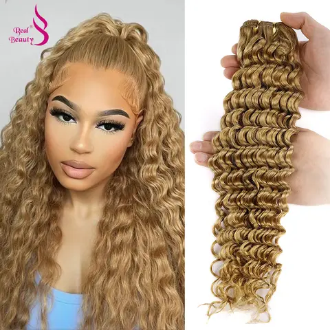 하이라이트 딥 웨이브 번들 레미 인간 헤어 익스텐션 위브 더블 씨실 헤어 번들 브라운 블론드 발레야쥬 컬러 100g